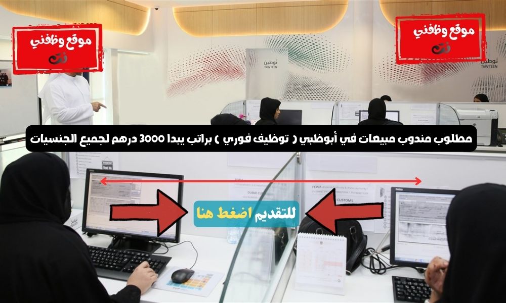 مطلوب مندوب مبيعات في أبوظبي ( توظيف فوري ) براتب يبدا 3000 درهم لجميع الجنسيات