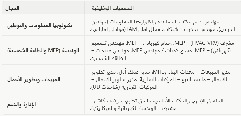 تغطي الوظائف المعلن عنها مجموعة واسعة من المستويات المهنية، مع تركيز كبير على الخبرات الهندسية والتقنية.